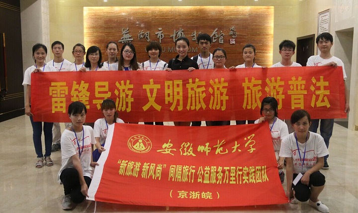 “新旅游 新风尚”间隔旅行公益服务万里行实践团队走进芜湖市博物馆,开展雷锋导游义务讲解、文明旅游知识宣讲、旅游普法等一系列志愿服务活动,正式拉开了为期20天的暑期社会实践活动的序幕。