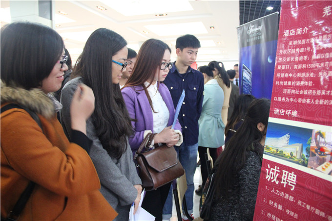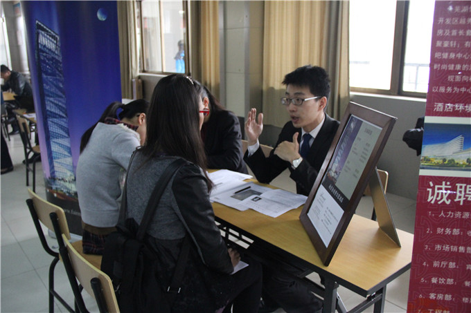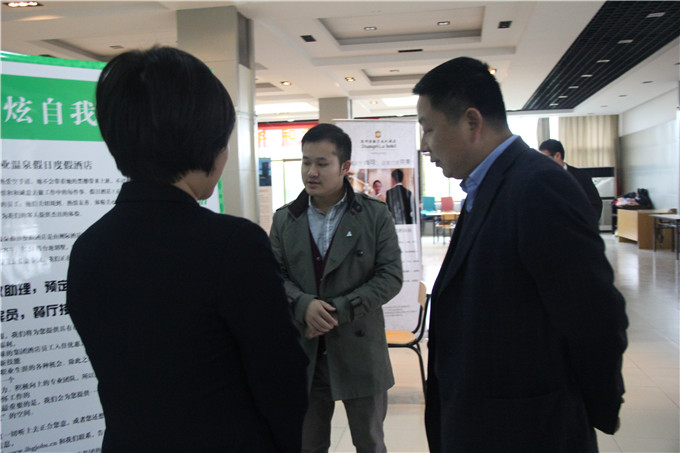 第二届“职旅天下”(酒店方向)专场招聘会。本次招聘会邀请了国内25家五星级高端品牌酒店参加,200余名2015届毕业生参与了此次招聘会,国旅学院党委书记吴春雷、副书记罗振、副院长卢松,校就业指导中心领导老师均前来实地调研交流。