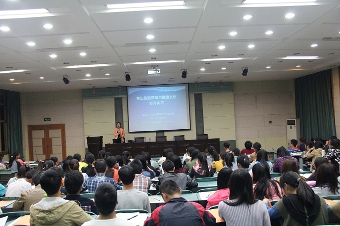 10月13日下午,2013级旅游管理专业皖南旅游目的地实习动员大会在学院实验楼101报告厅举行,国旅学院党委副书记罗振、副院长苏勤以及旅游管理专业杨效忠老师和王群老师出席了本次大会。