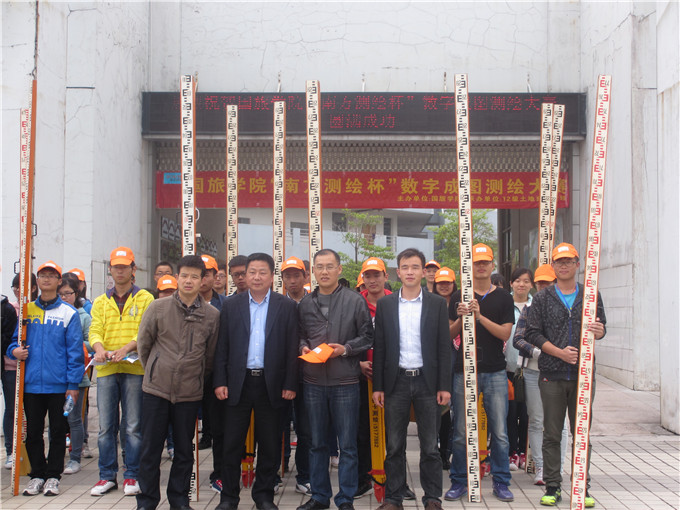 测绘地理信息高校师生风采,最大限度地拓宽学生就业渠道,实现“以赛促学、以赛促培、以赛促练、以赛促建”的目标。4月12日下午,由国土资源与旅游学院主办,12级土地资源管理专业承办的“南方测绘杯”数字成图测绘大赛在国旅实验楼门口成功拉开帷幕。学院党委书记吴春雷、副书记罗振,测量学导师梁栋栋及12级辅导员罗遥莅临了本次大赛开幕式。