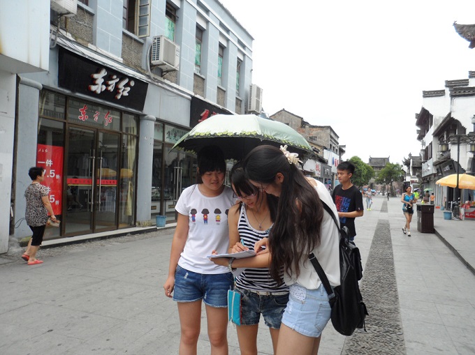 活动后期,团队来到陶行知纪念馆会议室,同学们就前几天的参观考察及学习“陶行知思想”情况进行了总结,并开展了一场“关于课堂教学的交流”活动。之后同学们又走上街头,对歙县居民进行了一次“党的十八大,伟大中国梦”的问卷调查,在当地居民的配合下,团队很快完成了调查任务。