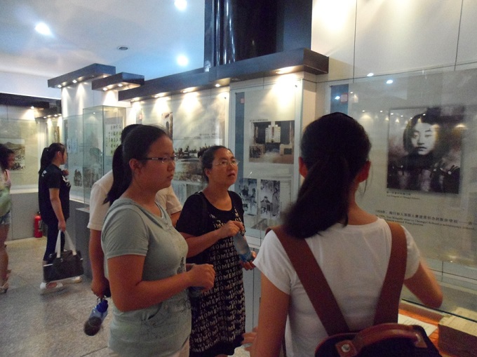 团队的成员们怀着无比敬仰的心情,首先认真聆听了馆内工作人员的讲解,认真观看了馆内的每一张照片、每一句介绍,深刻体会陶行知的教育情怀,感受一代人民教育家的伟大风范,然后左馆长结合实例针对陶行知的“生活即教育,社会即学校,教学做合一”进行了全面阐述,使队员们受益匪浅。接着他们又在陶行知纪念馆进行为期一天的见解实习与导游讲解活动,以此来纪念并深刻理解陶行知思想。队长张璐璐首先当了一次“导游”,给游客作了生动的解说,与游客之间进行了关于陶行知经历及思想的亲切交流。在队长的带动下,队员们纷纷走进游客中,向游客介绍陶行知先生的生平及影响,不仅是对陶行知教育思想的一次宣传,也是对同学们的一次真实的锻炼。
