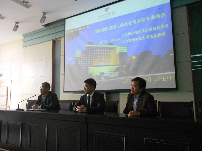 近日,中国最大的民营高星级连锁酒店集团、开元酒店集团高管经验交流会暨2013届旅游管理专业管理培训生校园招聘会在国旅学院实验楼101教室隆重举行,开元酒店集团北京区域总经理、北京歌华开元大酒店总经理、国产精品