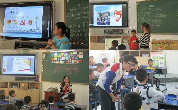 来自安师大国旅学院的大学生声情并茂的向小朋友们介绍了有关中国少先队队旗、队徽、标志等知识;带领同学们学习了红领巾的系法以及《少年先锋队队歌》;同时还通过大学生自身的志愿活动引导同学们学会帮助他人,无私奉献。整个活动过程中孩子们热情高涨、积极参与,与国旅学子形成了良好的互动。短短的四十分钟,小朋友们已经与老师结下了深厚的情谊,第一节课后,105班的孩子们纷纷围住时莉珠老师,一声声“老师您辛苦了”、“老师您明天还会来吗”让在场的国旅学子感动不已。