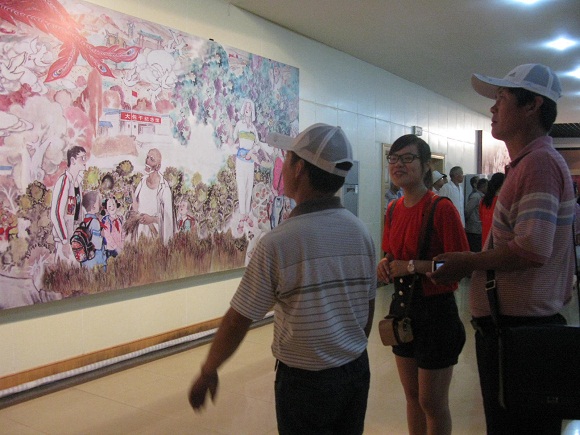 早晨,天空中飘洒着毛毛细雨。队员们组织着一起去了大包干纪念馆。今天的大包干纪念馆游客尤其的多,来自各地的游客想要在特殊的今天体会一下昔日的小岗。身穿红色队服的队员们正在为游客们讲解纪念馆里的陈列物。可爱好奇的小朋友,备感沧桑的老人……队员们用自己所学的知识热情的为参观者讲解。随后,队员们来到了三十几年前小岗村民按红手印的地点——“当年农家”。“当年农家”保留了几十年前的茅草屋,里面的陈设,家具、农具、厨房之类都保持着原来的模样。国家主席胡锦涛曾来到“当年农家”,在农家的小径上留下了自己的足迹。队员们与一些参观者互相交流,谈论着那些旧时的农具和房屋……
