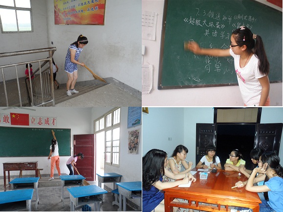 活动期间,实践队友们还与学生进行心理上的交流,帮助他们解决生活学习上的问题。在交流中,队员们细心地发现孩子们对大学生活充满了憧憬与向往,就结合自身的经历向他们讲述大学生活的点点滴滴。活动最后,暑践队员们帮助学校打扫卫生,虽然天气炎热,队员们汗如雨下,但脸上无不挂着快乐与满意的笑容。