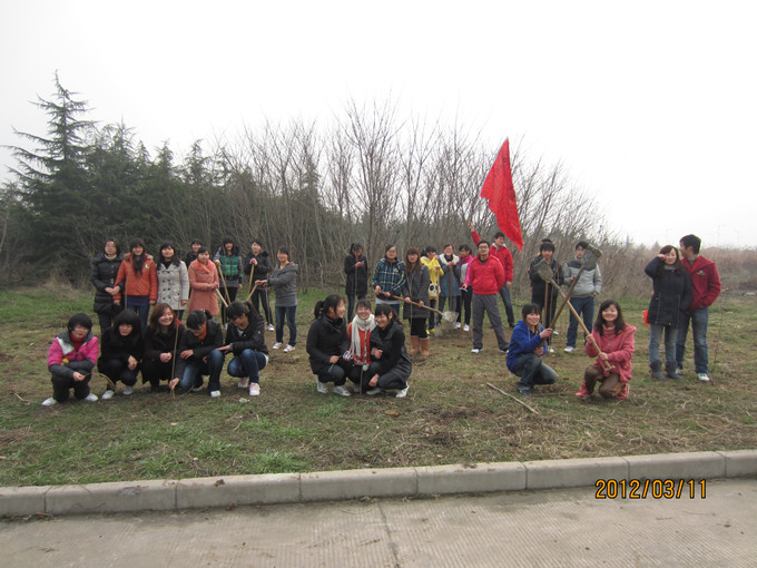 2011级旅游管理一班的同学在团支书刘海媚的组织班长程永意的带领下,于我校南体育馆后方空地上举行了“师生共植树,校园遍绿荫”为主题的义务植树活动。
