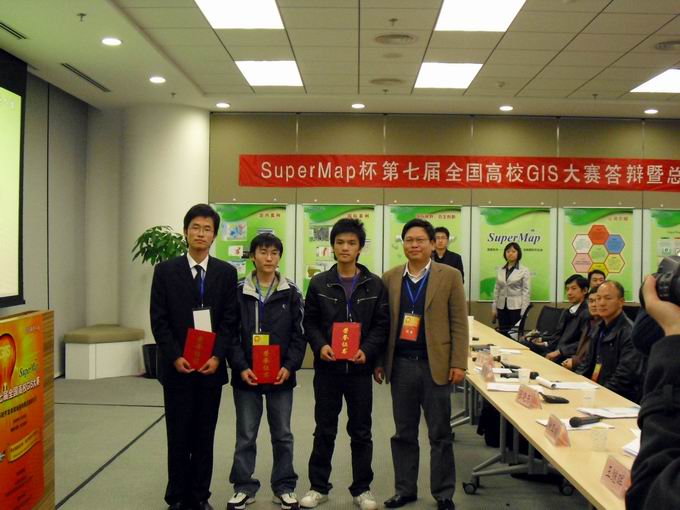 地理信息系统专业06级王九龙、王楠、汪洋、黄智、李方方等五位同学组成的参赛小组选送的作品《虚拟校园系统》入围总决赛,也是安徽省高校唯一进入决赛的作品,在总决赛答辩中团队成员机智敏捷,清晰准确,荣膺大赛组件开发组二等奖,为学校学院赢得了荣誉。