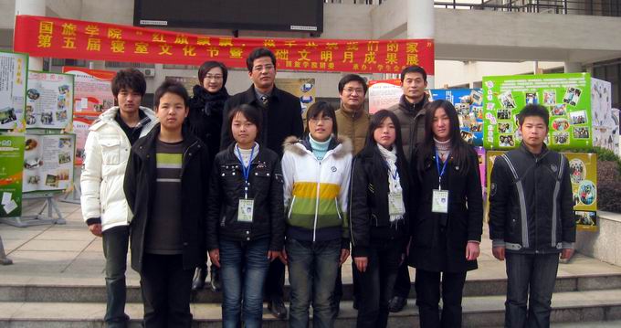 为充分展示学院第五届“讲基础文明 强自身素质 树国旅形象”基础文明建设月和09级新生在第五届“红旗飘飘,携手共筑我们的家”寝室文化节期间取得的成果,国旅学院团委、学生会于12月25日中午在花津校区大学生活动中心广场举行了 “红旗飘飘,携手共筑我们的家”第五届寝室文化节暨基础文明月成果展。
