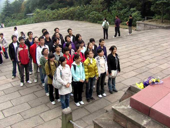 上午9时40分,大家满怀崇敬的心情来到了位于神山的烈士纪念碑前。经过小小的休整,学员们排好了队伍肃立在烈士纪念碑前。首先,由学员代表为纪念碑献上了鲜花,本期党校班长带领大家对烈士纪念碑深深的三鞠躬。然后班长带领大家学习了烈士纪念碑的建造历程和革命先烈的光荣事迹。
