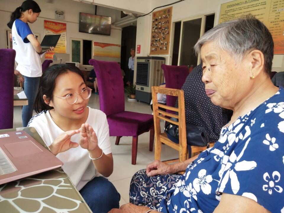 )近日,团队分别奔赴香苑老年公寓和瑞星老年公寓,为老人们科普以地震为主的防灾减灾知识。由于敬老院的场地及设备有所限制,队员们采用了半脱稿的方式向老人们介绍了地震等不同自然灾害的种类、成因,并讲解了灾害发生前的前兆以及遇到灾害时的逃生自救方法。宣讲之后,队员们利用电脑等设备为老人们播放了防灾减灾知识的视频,并以“一对一”的方式,辅以生动详细的动作示范,分别为每个老人具体讲解了遇到灾害时的自救方法。