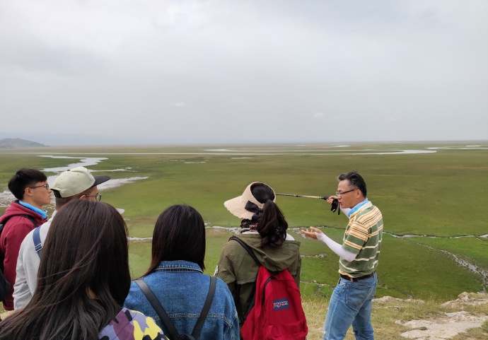 自我国改革开放以来,虽然经济发展上取得了令人瞩目的成就,但也遇到了非常严峻的环境问题。习近平主席曾提出了“绿水青山就是金山银山”的科学论断。麻金继教授指出生态环境的保护直接关系到这片土地的命运,而对于如此大面积的生态保护区而言,生态保护需要科技手段的支持。随后麻金继教授向大家讲解了如何利用遥感技术,通过高空间分辨率数据与多光谱数据估算河水的体积,以及如何评价湿地生态价值。讲课过程中,越来越多的保护区工作人员和沿路游客被吸引过来,共同倾听。麻金继教授用通俗易懂的语言向他们讲解GIS与遥感在生态评估中的应用,现场响起了一片热烈的掌声。大家一致认为,将课堂知识带入到大自然中,能让同学们有更加深刻的理解与体会。