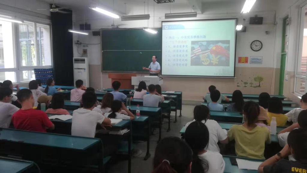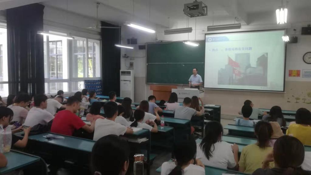 首先,乔静向同学们介绍了中美贸易摩擦和香港近期局势等问题。关于中美贸易摩擦,乔书记从“5个讲清楚”来向同学们来讲解,即“讲清楚事实、讲清楚实质、讲清楚趋势、讲清楚战略、讲清楚部署”,要求同学们要对国家树立坚定的信心,要仔细甄别网络信息,理性发声。关于香港近期局势,他带同学们简单回顾了香港近期有关问题的起源、变迁脉络以及中央的态度立场,告诫同学们要看清实质,端正态度理性爱国。