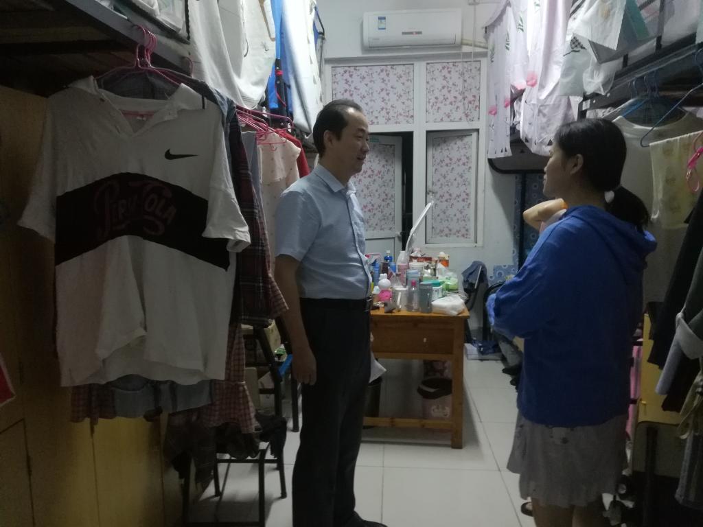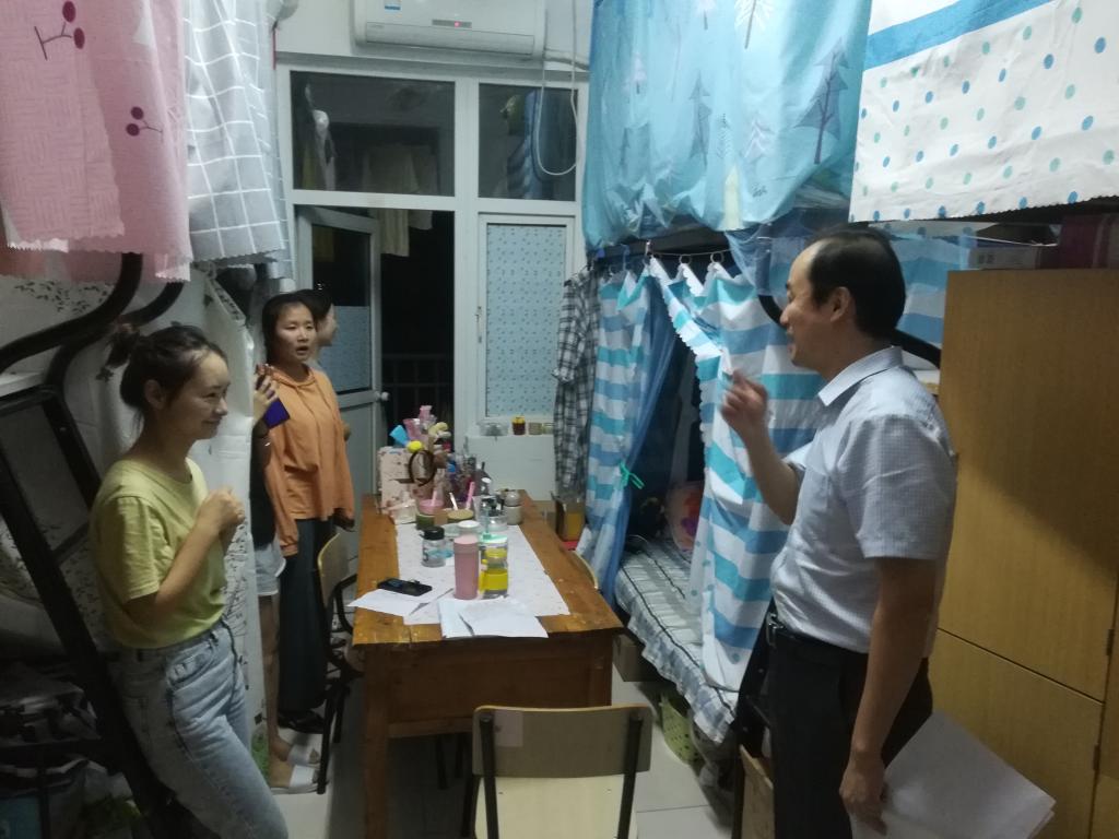 党委副书记乔静深入寝室开展安全检查工作,并与同学们深入交谈、送以亲切关怀和慰问,2017级地理信息科学专业、2018级旅游管理专业(专升本)部分寝室受访,辅导员韩红豆随同。