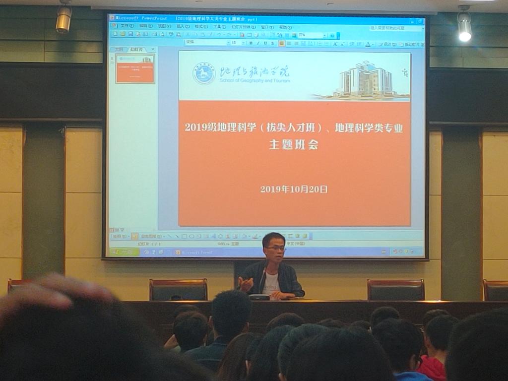 江文萱 齐小学)10月20日晚,2019级地理科学大类专业在学院实验楼101报告厅成功举办了新生团建系列活动。2019级地理科学(拔尖人才班)、2019级地理科学类1班、2019级地理科学类2班全体同学参加。活动由辅导员齐小学主持。