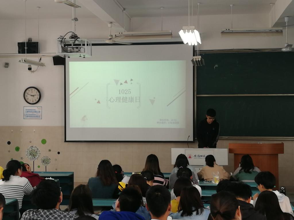 此次活动共分为三个部分:介绍当代大学生心理健康状况、大学生心理健康测试以及播放观看相关视频。活动开始,杨辰通过几个例子和总结,向同学们阐述了当代大学生的心理健康状况、及产生原因,让同学们深刻认识到心理健康重的要性。通过心理健康测试,在有限的时间内了解同学们的最真实的心理健康状况。心理励志影片展播活动,同学畅所欲言,纷纷谈论观影后感受。