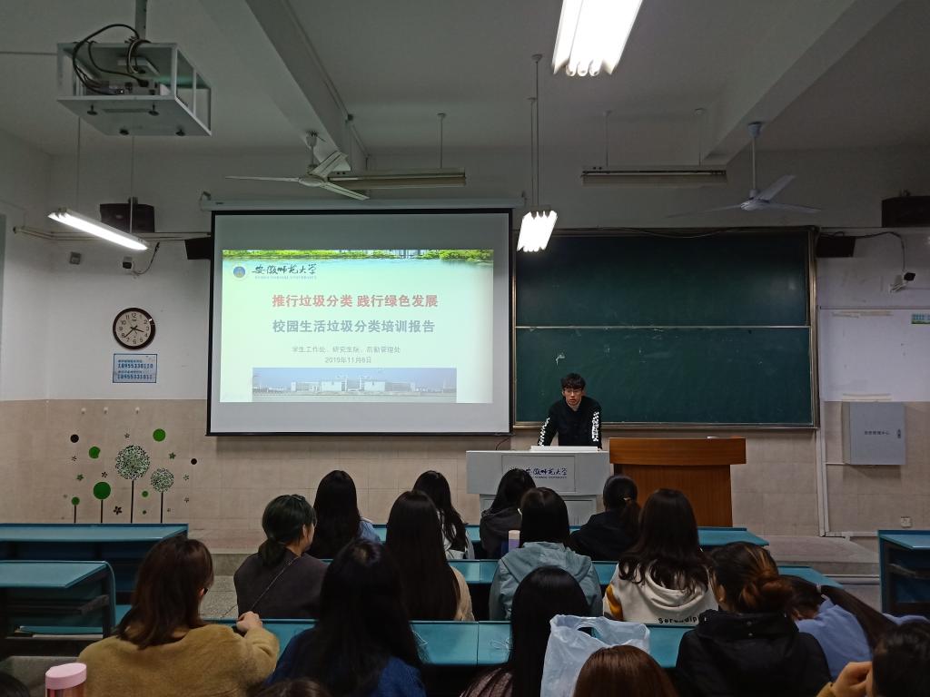 (本网讯 孙雯杰)为贯彻落实学校垃圾分类工作落实,让同学们深入了解绿色环保的意义,增强环保意识。2018级地理信息科学专业于11月21日晚7:00在行知楼2040303召开校园生活垃圾分类主题班会,由汪岩主持,2018级地理信息科学专业全体同学参与会议。