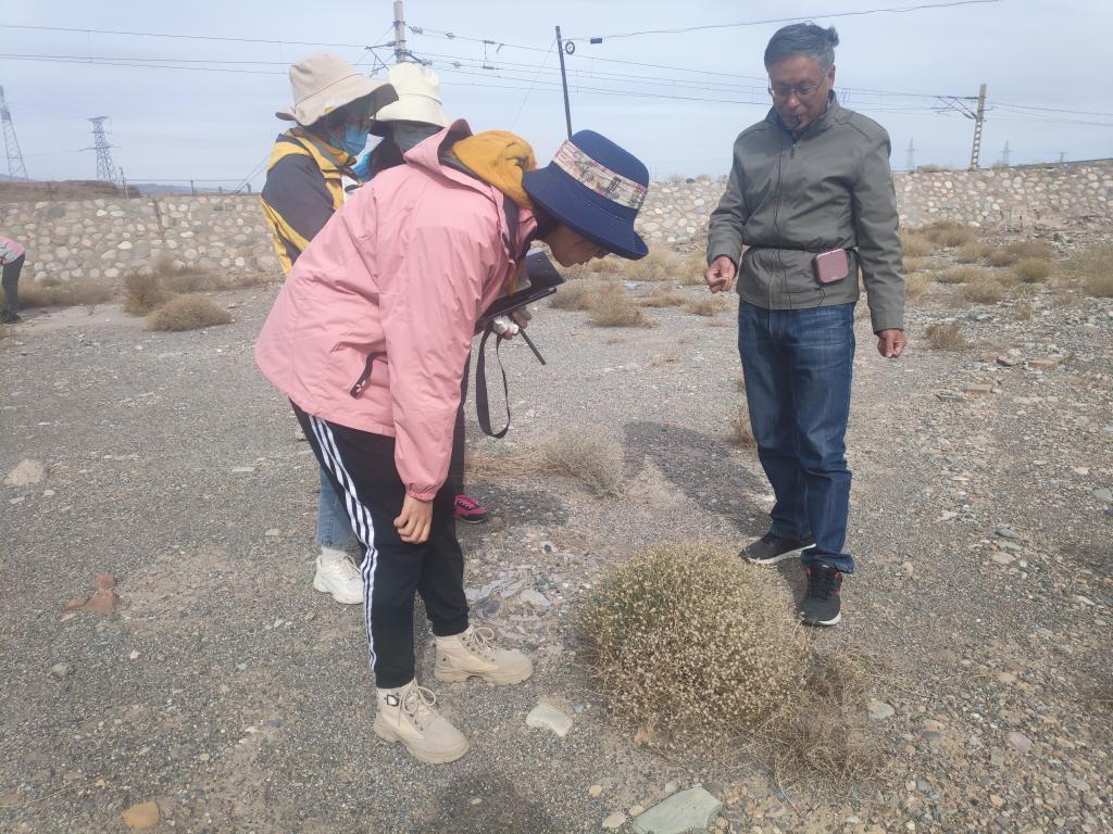 西北地区以地广人稀为人所广知,因此团队的实习观察点之间也有一定距离,但长时间的车程并没有减弱团队师生对沿途地貌景观的观察热情。在随行车辆行驶过程中,程先富为同学们讲解窗外出现的戈壁沙漠变化及其主要特征、小规模雅丹地貌以及当地的经济作物,同学们也根据自己所观察到的地理景观提出疑问并与老师们积极探讨。同时,程先富也细心提醒大家要提高安全意识,注意个人安全,紧跟班级团队,做好个人防护工作。