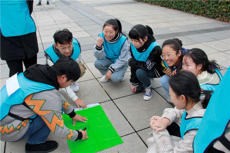 接着,进行的是精彩有趣的“极速六十秒”小游戏,教练事先在地上画一个圆圈并在圈中放三十张卡片,要求同学们在规定的时间根据卡片信息推断出其代表的数字并按照顺序交给教练。从第一轮到第九轮,每一轮都有不同的收获,成绩一轮比一轮好。游戏中同学们积极讨论,相互配合,在冷风中奔跑,在游戏中思考,不断增强大家的协作能力和团队意识,既有头脑风暴又有速度的挑战。