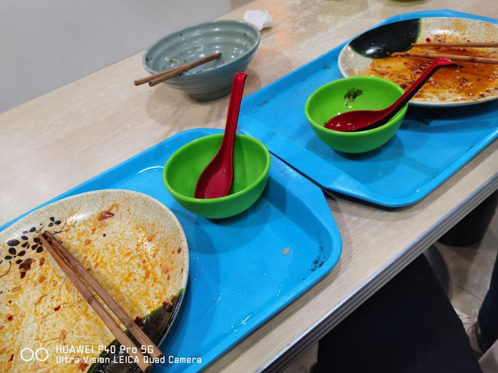 实践活动中,团成员深入食堂一、二楼用餐区,观察调研同学们点餐与剩饭情况及剩饭原因,记录中午用餐高峰期剩饭收集处收集来的剩饭量,并对同学们进行“光盘行动”的宣传与倡议,并且以身作则坚决执行光盘行动。