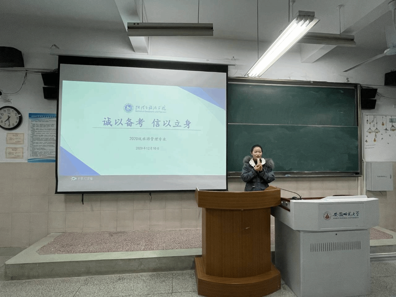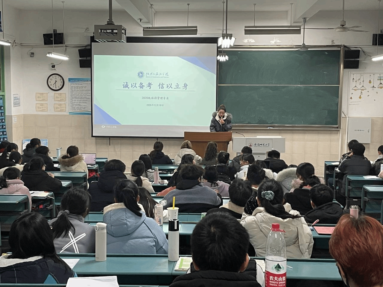 孙云峰 赵佳慧) 沐于知识,学于诚信。大学英语四、六级考试和期末考试临近,为使大一新生在四级英语考试和进入大学的第一次期末考试中能够端正学习态度,树立优良学风,严格考风考纪,12月10日晚七点, 2020级旅游管理专业在行知楼4号楼203教室召开“诚以备考,信以立身”主题班会。班会由辅导员赵佳慧主持,2020级旅游管理专业全体同学参与。