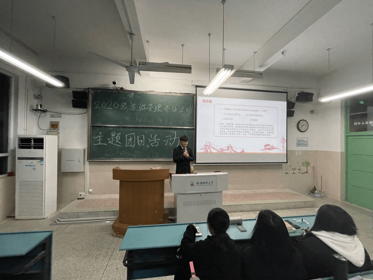 赵佳慧 孙云峰)不忘初心 牢记使命。为了进一步深化同学们对习近平新时代中国特色社会主义思想的认识和理解,深刻学习党史、新中国史、改革开放史、社会主义发展史,2020级旅游管理专业二班于12月22日晚7:00在行知楼4号楼203教室举办“学四史 守初心 ”主题团日活动。本次活动由二班团支书孙浩男主持,2020级旅游管理专业二班全体同学参与。