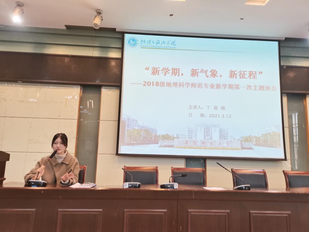 实验楼101报告厅开展“开学第一课”主题班会。会议由辅导员丁茹栩主持,2018级地理科学(师范)专业全体同学参与。
