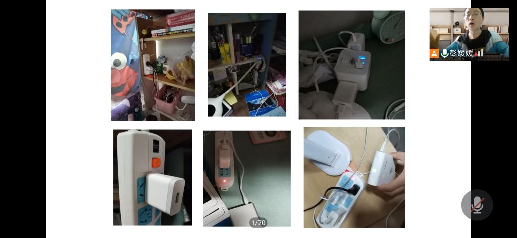 除了离校同学以外,在校同学也同样要遵守校规校纪的要求。留校学生须严格遵守学生宿舍管理规定,安全、文明度过假期,严禁在宿舍内留宿他人;严禁未经批准擅自离校,要按时晚点名签到。在校期间不能使用违规电器,坚持人走断电。此外,彭媛媛还通过照片具体举例违纪案例,提醒同学们切莫违规用电。