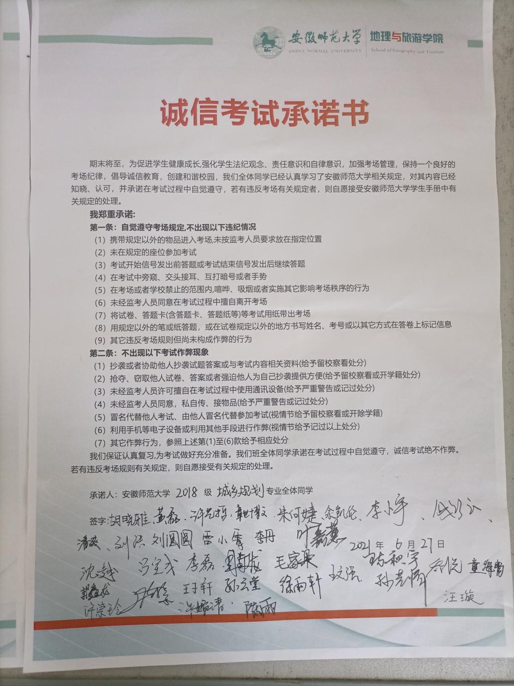 张慧 李娜 潘爽)2021年6月23日晚,2018级地理科学(非师范)专业及2018级城乡规划专业“严于律己 以诚参考”诚信考试主题班会在行知楼4号楼104顺利举行。班会由辅导员张慧主持,2018级地理科学(非师范)专业及2018级城乡规划专业全体同学参加。