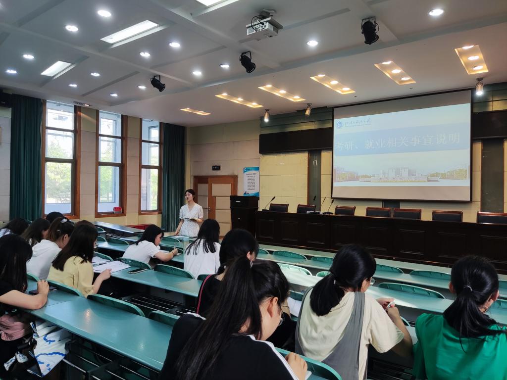会议伊始,丁茹栩从国家政策和考研现状等几个方面为同学们指点迷津,建议同学们要结合自己的实际情况,选择一个适合自己的学校及专业,不可好高骛远;在假期制定相关学习目标和计划,积极备考,不忘初心,坚持奋斗,不可“三天打鱼,两天晒网”。她还鼓励同学们在考研过程中要放平心态,学会调节和控制焦虑情绪,做到劳逸结合,并对即将踏上考研之路的同学们给予期望和祝福。