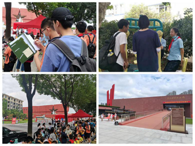团队于早上九点左右到达了渡江胜利纪念馆,在入口处聚集着很多前来参观的初中生,小学生和家长。因此在进馆参观之前,队员们便对他们开展了问卷调查,他们都比较配合,认真的回答了问卷上的一系列问题。通过交谈也了解到这次前来参观主要是出于学校暑假实践的要求。年龄最小的是2020级一年级即将升二年级的小学生,他们对红色文化也有所知晓,主要是听长辈和通过书本知识了解比较多。
