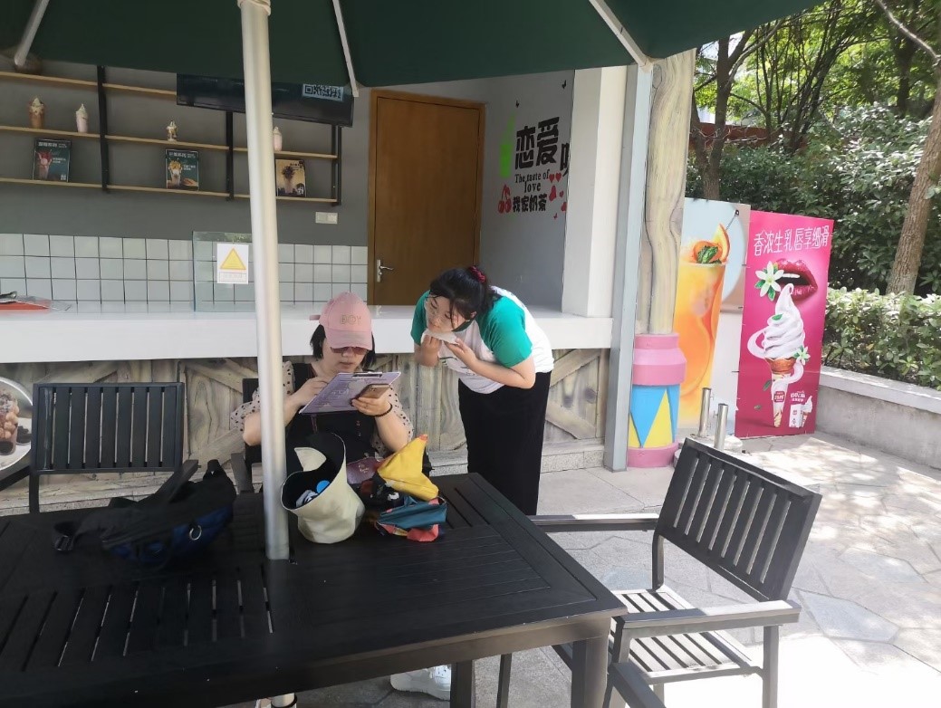 西门出发,来到芜湖方特四期——东方神画。在疫情防控常态化背景下,组员们按原定计划向游客分发调查问卷,但多游客反映自己是第一次到方特游玩,无法对问卷作出恰当回答。经过商讨,组员们决定调整调研方式,转而对景区的管理者进行访谈。在指导老师余伶莲的帮助下,对客服主管进行了线上访谈,并将访谈的内容进行详细汇总记录。