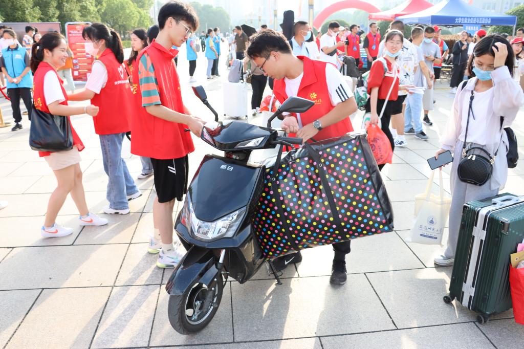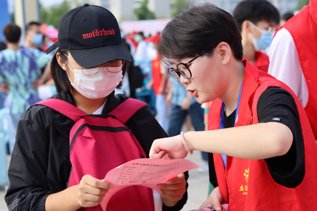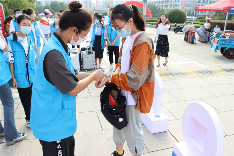 共招募100余名志愿者,分别在报道处、新生寝室、后勤机动、宣传四个场所具体设置人脸识别、签到认证、校园卡发放等14个服务组,以多方面、无差别地为新生做好服务工作为目标,为此次新生报到做好充足准备。在迎新现场,志愿者们统一着装,佩戴口罩,积极主动为新生搬运行李、引导路线;学院各部门各司其职,分工合作,在彼此配合下,迎新工作有序进行。
