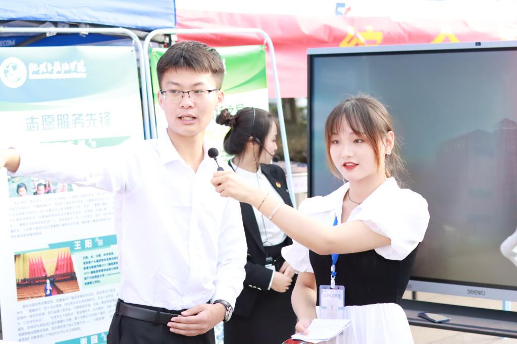 新生特征和风采。互动展示环节志愿者和专业优秀学子通过专业设备介绍引导家长学生认识专业所学,同时准备了国产精品