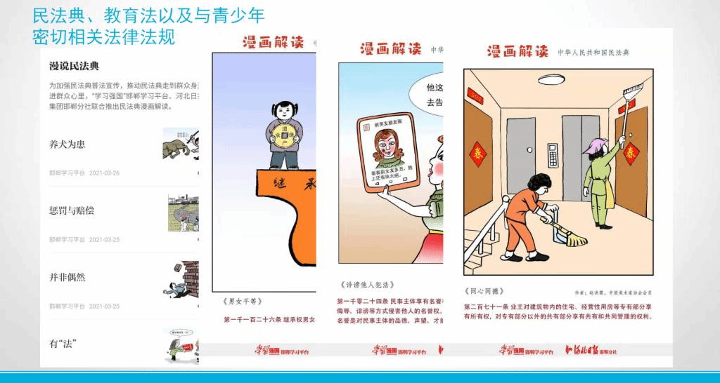 学法知法守法,培育好价值观。张慧为同学们带来了法治教育第一课,强调了学法知法守法的重要性,介绍了教育部全国青少年普法网设立的“学宪法讲宪法”活动,并鼓励同学们积极参与相关网络活动。她还向同学们科普了一些宪法知识和民法典知识,告诫大家在正确维护自己的权利时,也要尽到自己的义务,做到注重平时言行、不在网上乱发言、不信邪教等。同时,她联系相关文件进行了电动车安全文明使用教育。