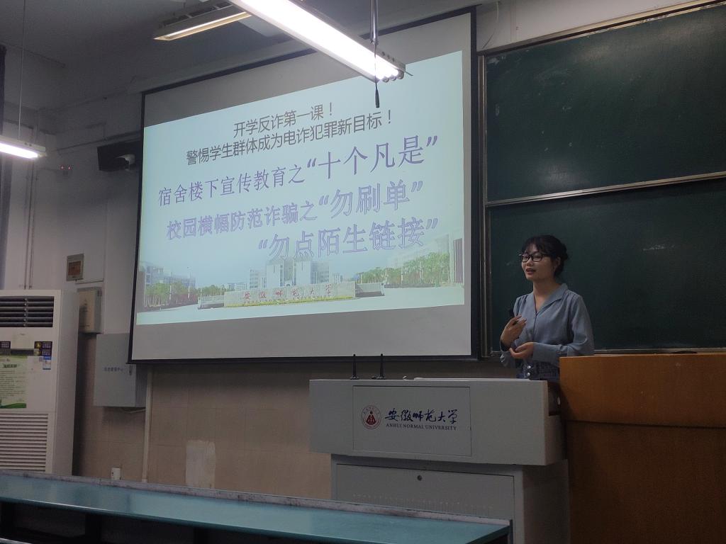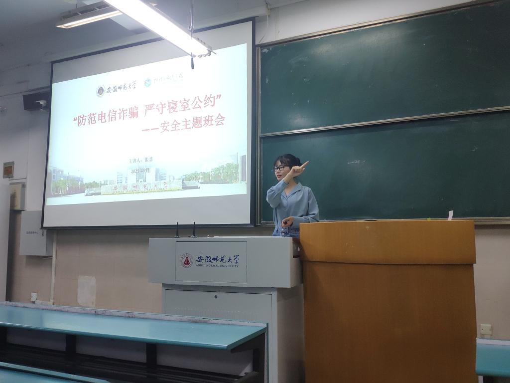 防范电信诈骗,严守寝室公约。在张慧的带领下,班级同学共同学习了“十个凡是”与6种反诈案例,囊括了刷单返利、冒充电商物流客服、注销“校园贷”、网络游戏产品虚假交易、冒充熟人诈骗、冒充公安机关等诈骗手段揭秘学习。张慧还播放了国家反诈中心官方的宣传视频,建议同学们下载安装国家反诈中心APP,多数同学表示已经下载安装。她还向大家介绍了首届校园安全主题微视频大赛,鼓励同学们尤其是学分未修满的同学积极参赛。此外,张慧进一步强调了“四项禁令”和学生寝室文明公约。