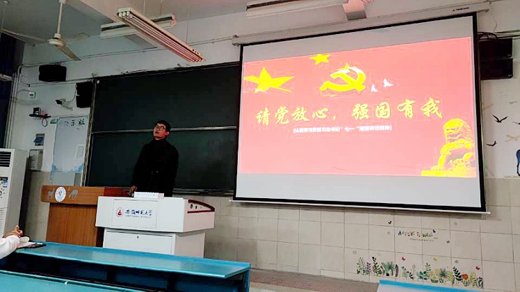 刘来祺)为提高当代青年大学生思想觉悟,2021级土地资源管理专业团支部于10月17日晚在行知楼2040202教室举办了“请党放心,强国有我”主题团日活动,活动由团支部书记王凯铎同学主持。