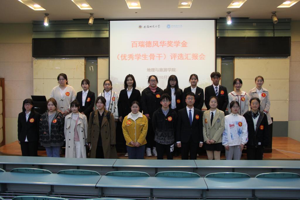 百瑞德奖学金”,旨在支持教育事业发展,激励在读本科生勤奋学习、励志成才。其中,“百瑞德风华奖学金”用于奖励帮扶在党支部、团委、学生会、社团、班级等组织中担任学生干部,或在道德风尚、学术研究、学科竞赛、创新发明、社会实践、体育竞赛、文艺比赛等方面成绩特别突出的优秀学生,充分发挥学生骨干在地旅学子中的示范、引领作用,展现“地旅风华”。