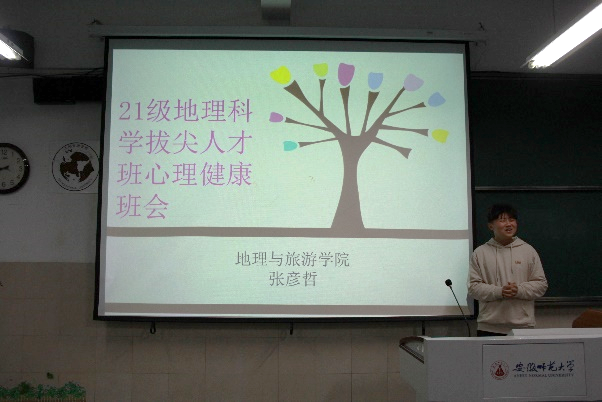 马思甜)为了加强和增进学生心理健康,提高学生心理调节能力,培养良好心理品质,促进学生思想道德素质和心理健康成长,2021级地理科学(拔尖人才班)在心理健康委员张彦哲同学带领下于10月20日晚8点30召开了“10.25”心理健康主题班会。