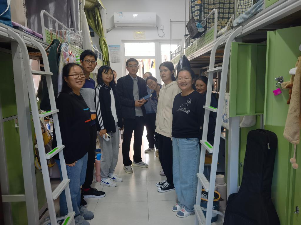 在检查过程中,韩红豆带领班委对寝室安全用电、卫生情况以及防火防盗等安全隐患做了仔细检查。此次检查的内容包括床上物品是否摆放整齐,地面和桌子是否干净整洁,学生寝室是否有电线、网线乱牵乱拉的现象等等。检查过程中,韩红豆要求同学们要坚决杜绝违规用电现象,自觉做到不乱接电线、人走断电等安全规范用电,提醒同学们要保持好寝室卫生,做到定期通风消毒,认真落实“晨午晚”体温登记等新冠肺炎防控工作要求,并提醒同学们加强体质锻炼,增强抵抗力,如果遇到身体不适要第一时间报告并就医。