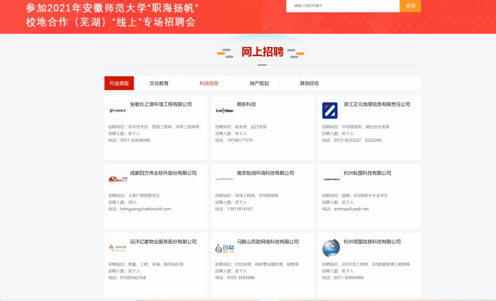 此外,“职海扬帆”网上招聘平台还积极为招聘企业和毕业生提供招聘信息发布、三方在线对接、网上简历投递、网上集中宣讲、网上视频会议、网上就业咨询、就业政策学习、就业创业指导、高峰论坛直播等“云服务”功能,打破了时间和空间限制,实现了全域、全天候随时招聘。