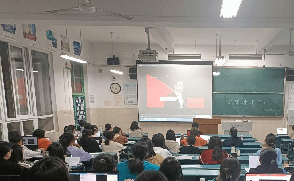韩红豆 翁丹煜)为深入学习贯彻习近平总书记在庆祝中国共产党成立100周年大会上的重要讲话精神,中央组织部、中央广播电视总台联合录制了3期《党课开讲啦》节目。为加强班级同学对中国共产党百年党史的学习,进一步弘扬并感悟伟大建党精神。11月3日晚,21级地理科学(师范)1班在2040203教室开展“初心因践行而永恒,使命因担当而伟大”主题团日活动,组织全体同学观看《党课开讲啦》第3期《党的伟大成就》(杨凤城主讲)节目。