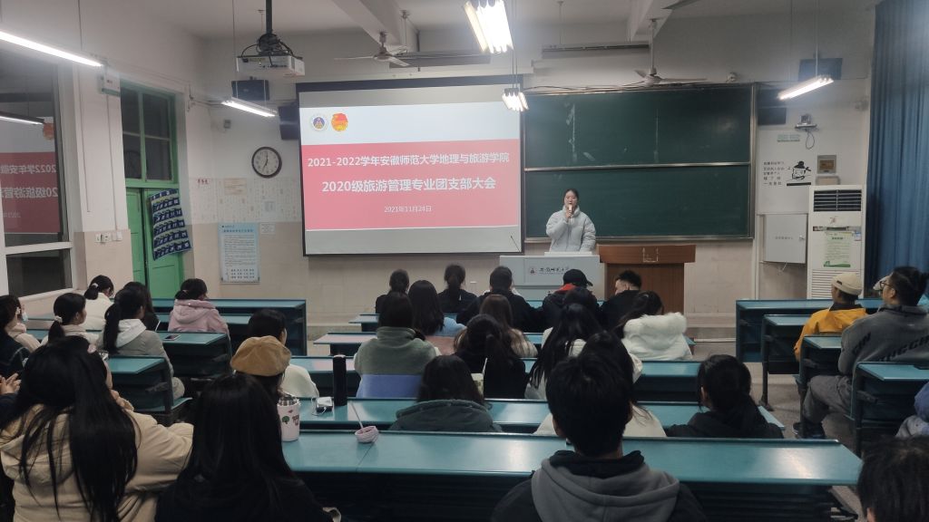 舒玉茹)为加强班级团支部建设,回顾2021-2022学年团支部的工作成果,总结团支部工作经验。11月24日晚,2020级旅游管理专业召开团支部大会。本次会议由团支书徐雨菲主持召开,2020级旅游管理专业全体同学参与。