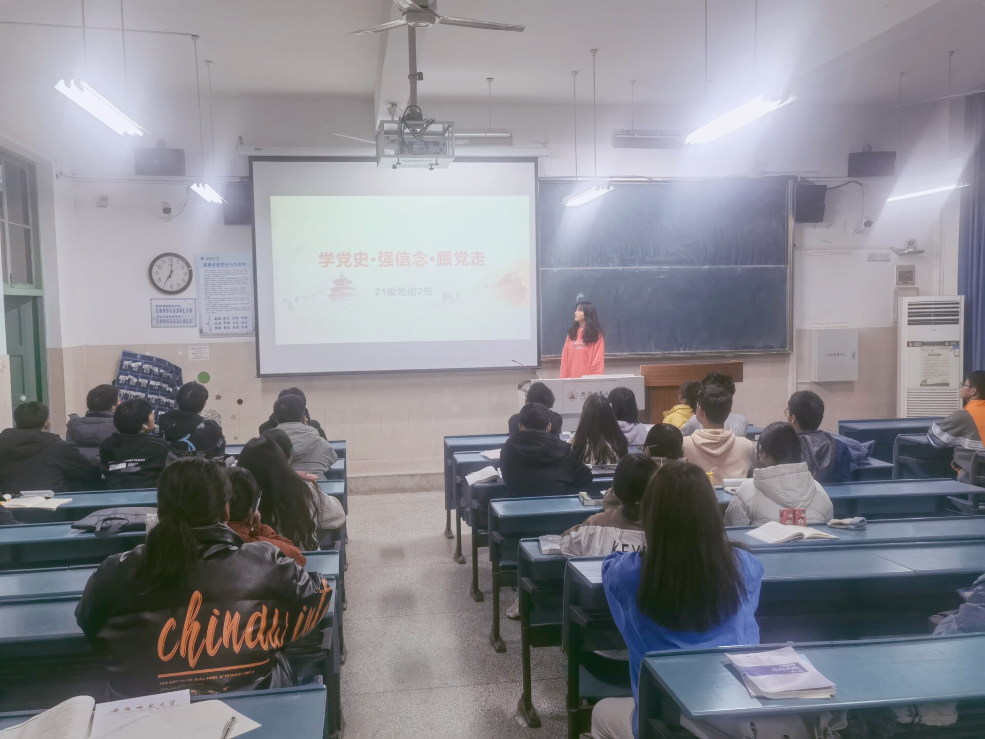 胡珊珊)2021年11月24日晚,2021级地理信息科学专业2班于行知楼4号楼303室开展主题团日活动,会议围绕“学党史,强信念,跟党走”的主题展开,由团支书杨周洲主持。