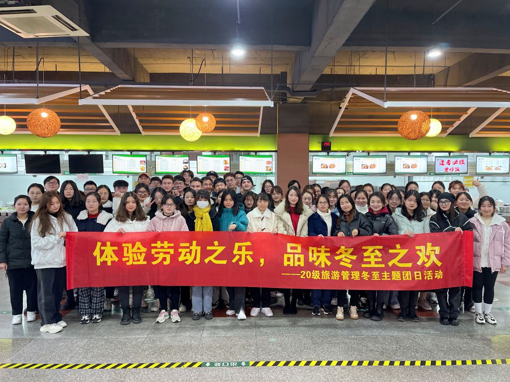 赵佳慧 舒玉茹)“冬至到,吃水饺”。为迎接冬至节气的到来,让同学们亲身体验劳动的参与感和获得感,加强同学们之间的交流,12月12日,2020级旅游管理在一食堂三楼开展以“体验劳动之乐,品味冬至之欢”为主题的包饺子活动。