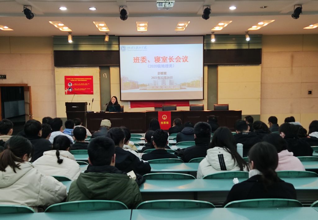 2021年12月16日,2020级地理类各专业召开考风考纪教育暨期末及假期安全教育主题班会。会议由彭媛媛主持,2020级地理类全体学生参会。