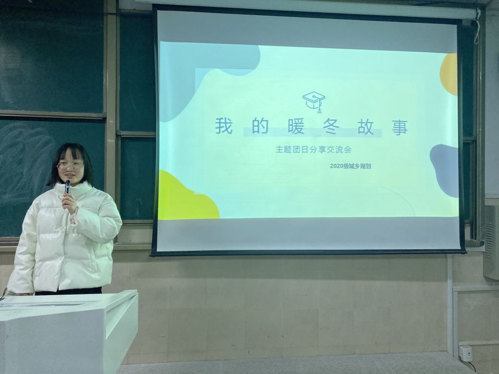 刘少杰 耿艺榕)为认真落实习近平总书记关于青年工作的重要思想,引导和帮助广大青年学生上好与现实相结合的“大思政课”,促进广大学生在实践锻炼中受教育、长才干、作贡献,2020级城乡规划专业1班团支部响应落实校、院团委的部署要求,在2022年寒假期间组织支部团员开展了一系列寒假社会实践活动,并于2022年2月21日晚召开“我的暖冬故事会”主题分享会。