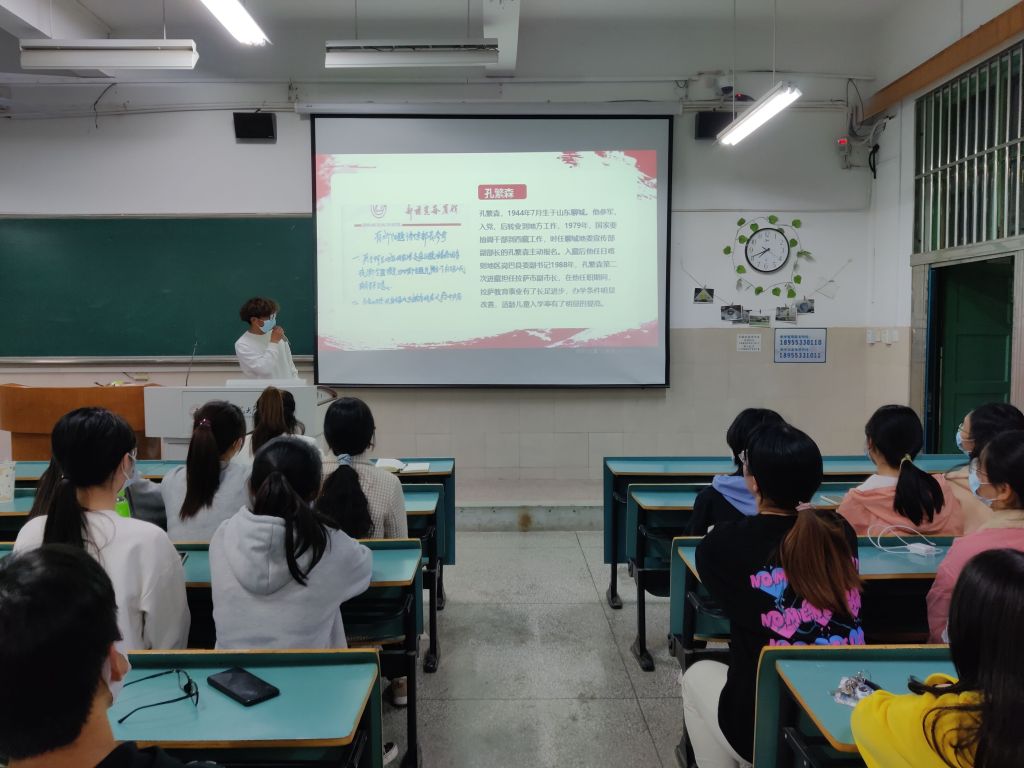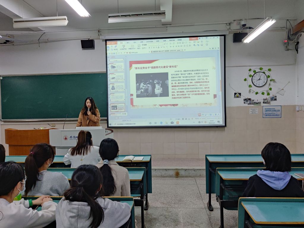 迎接建团百年,回望青春之路。辅导员赵佳慧带领同学们一起学习了党领导下的百年青年运动史,回顾学习了建团百年中青年奋斗的典型事迹,以此来勉励同学们要做奋发向上的新时代好青年,做到有志立于当下,有梦追于当下,无愧自我,无愧青春!活动的最后,校团委朱蕾老师结合自身经历和同学们分享了开展团学教育活动的意义,她说希望同学们能够在实践中激扬青春梦想,在奋斗中书写崭新华章!