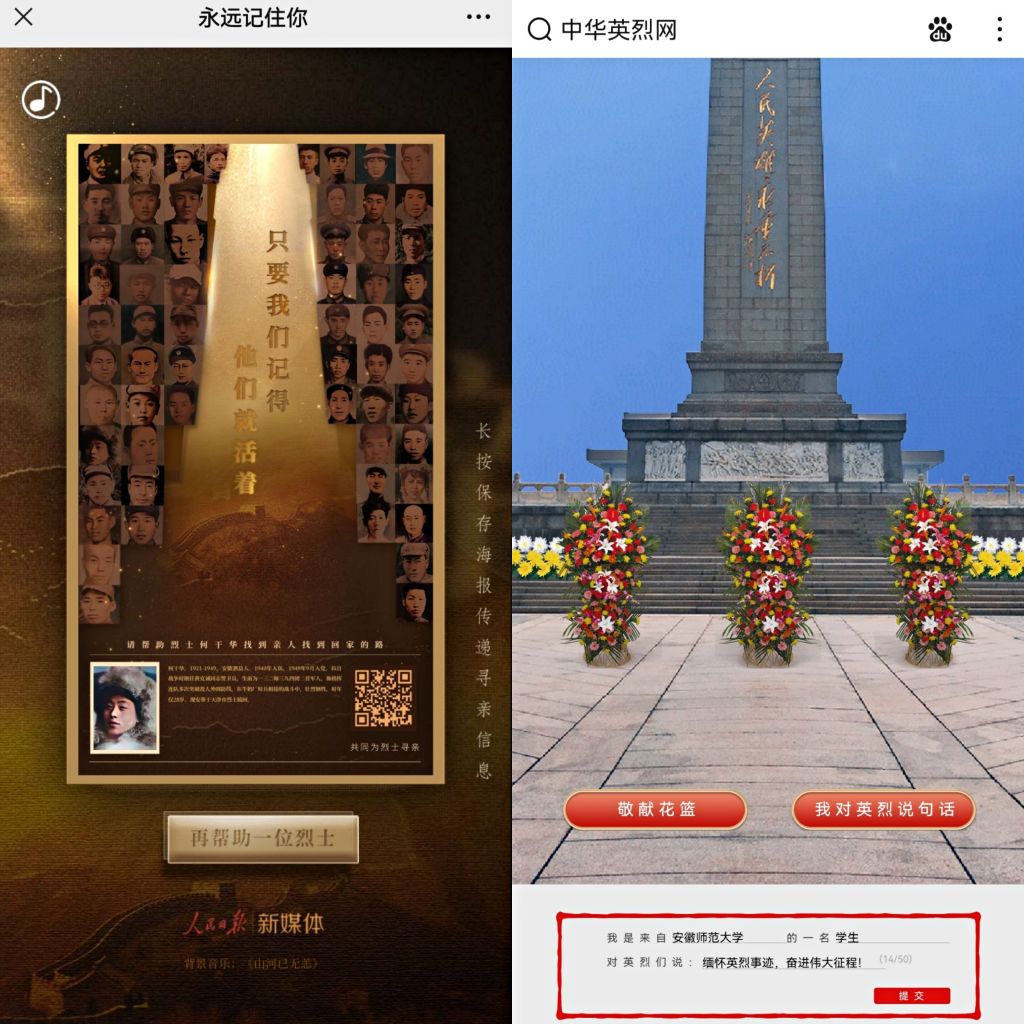 为严格落实疫情防控相关规定,遵守学校疫情防控要求,本次主题团日活动共分为线上线下两大模块,以线上线下相结合的方式组织同学们深切悼念国家英烈,激发同学们的爱国情感。线上组织全体团员青年登录中华英烈网“清明祭英烈”专栏,进行网上祭扫英烈,参与“向烈士网上献花”、“帮家乡的烈士寻亲”等活动。