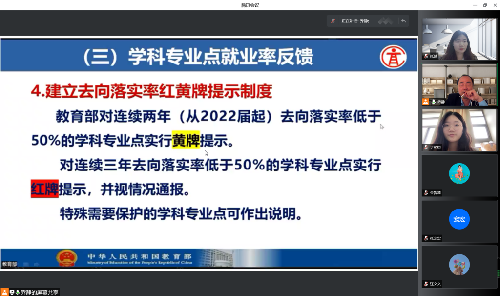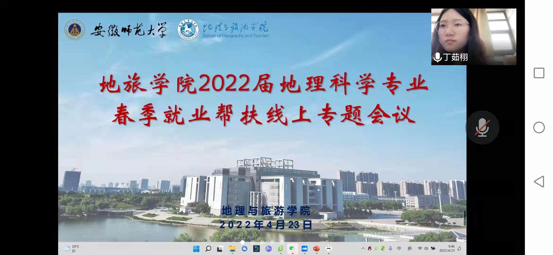 丁茹栩)为进一步高效推进地理专业毕业生就业工作,结合疫情常态化下的就业新形势和学生新需求,2022届地理科学专业于4月23日上午9点在腾讯会议开展线上春季就业帮扶专题会议,院长方凤满、院党委副书记乔静、副院长汪文文、地理专业负责人朱永恒、地理系专业教师、辅导员丁茹栩、张慧出席本次会议。会议由地理专业负责人朱永恒主持。